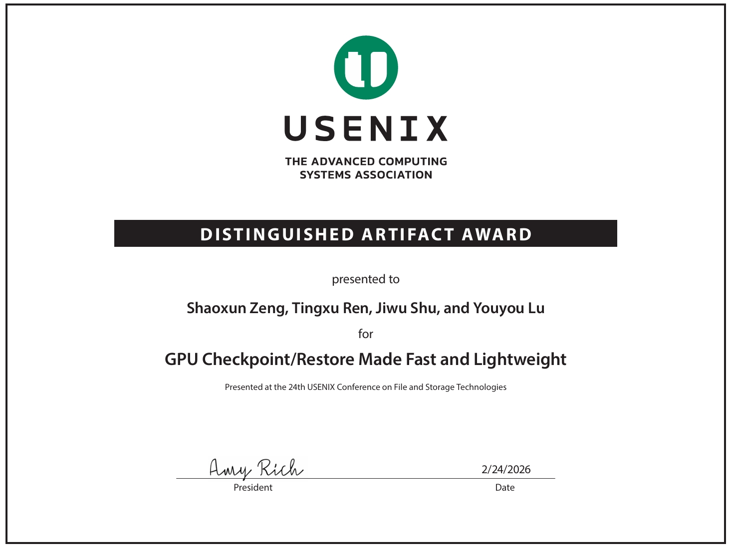 Tsinghua earns Distinguished Artifact Award at FAST 2026