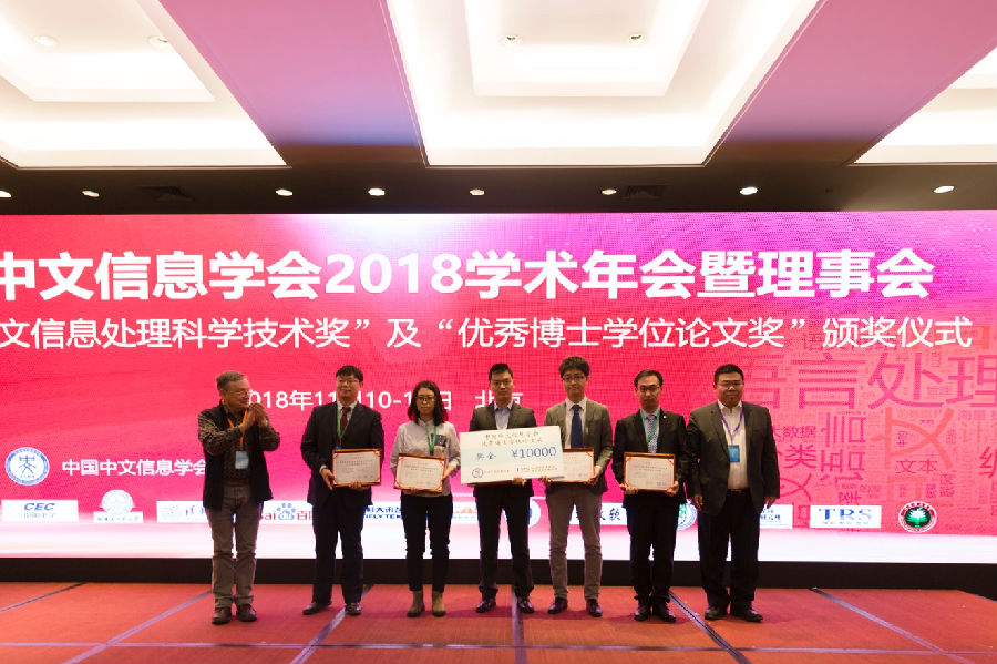 据悉,中国中文信息学会优秀博士学位论文奖由中国中文信息学会设立和颁发,两年评选一次,每次评选优秀论文不超过5篇。经格式审查、初评及终评等多个环节,今年共有5篇论文被评为“中国中文信息学会优秀博士学位论文”,另有5篇论文获得优秀博士学位论文提名奖。