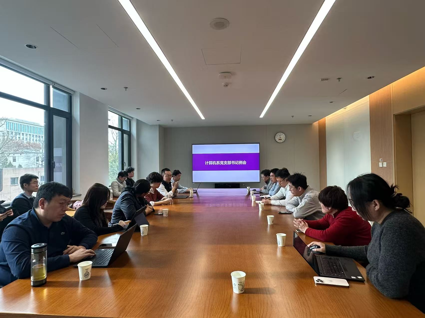 11月24日下午,计算机系党委在自强科技楼1号楼三层会议室召开了党支部书记例会,系党委副书记赵颖和韩文弢,全体教职工党支部书记和副书记、学生组和研工组组长、学生党支部书记代表、党办主任和组织员等近三十人参加会议,会议由赵颖主持。