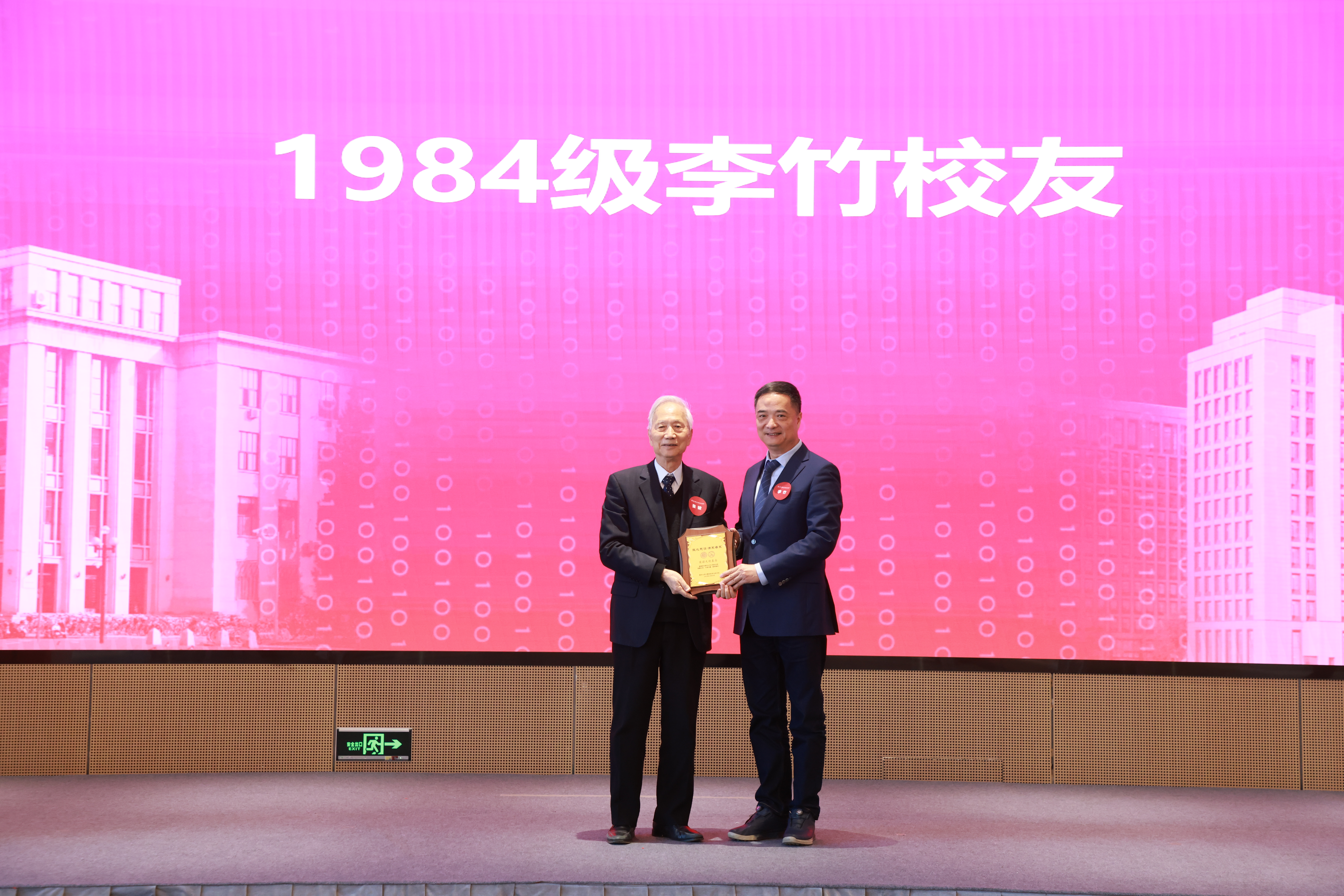张钹院士为1984级校友、计算机系分会副会长、英诺天使基金创始合伙人李竹颁发捐赠纪念牌