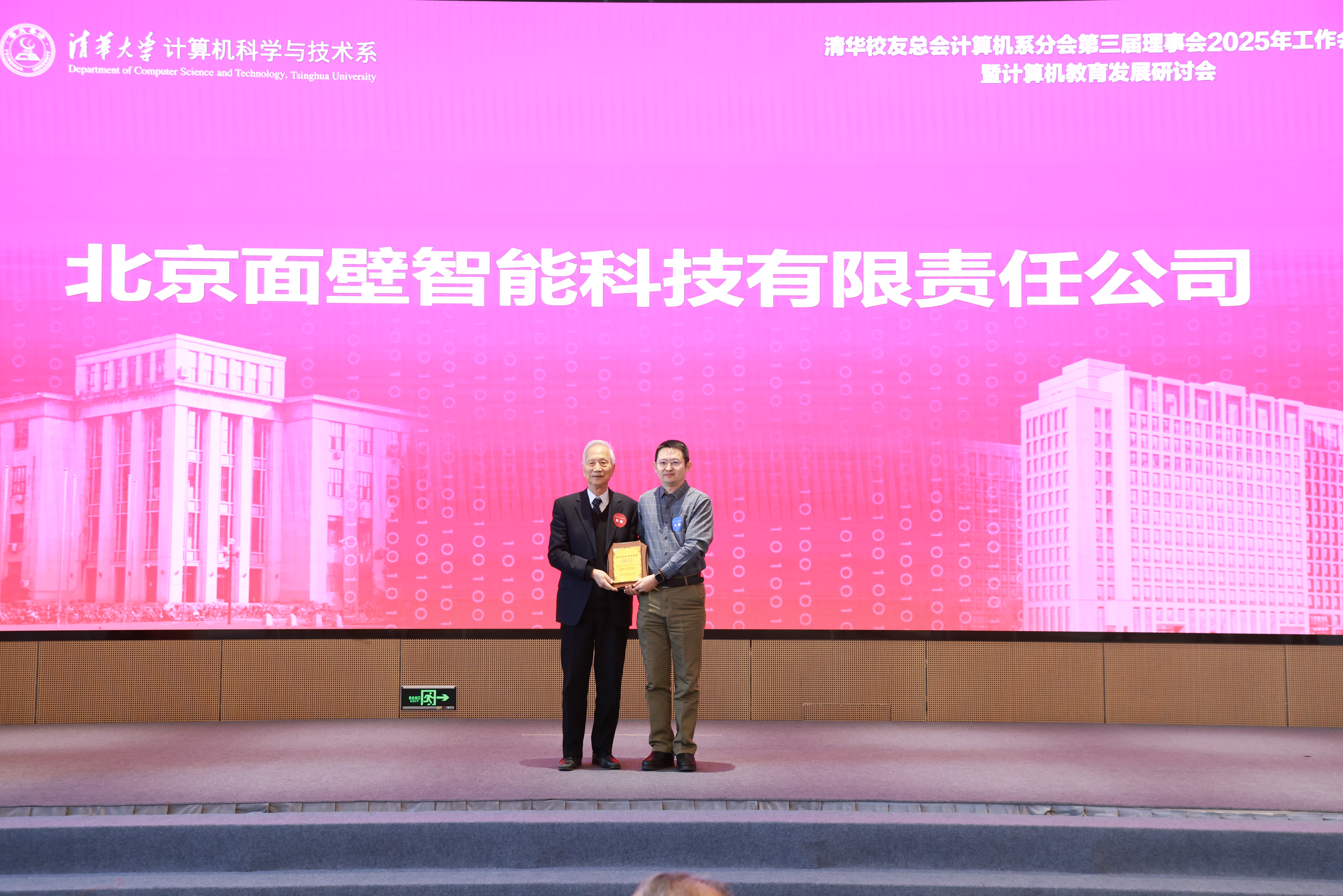 张钹院士为北京面壁智能科技有限责任公司代表、校企合作负责人王巍颁发捐赠纪念牌