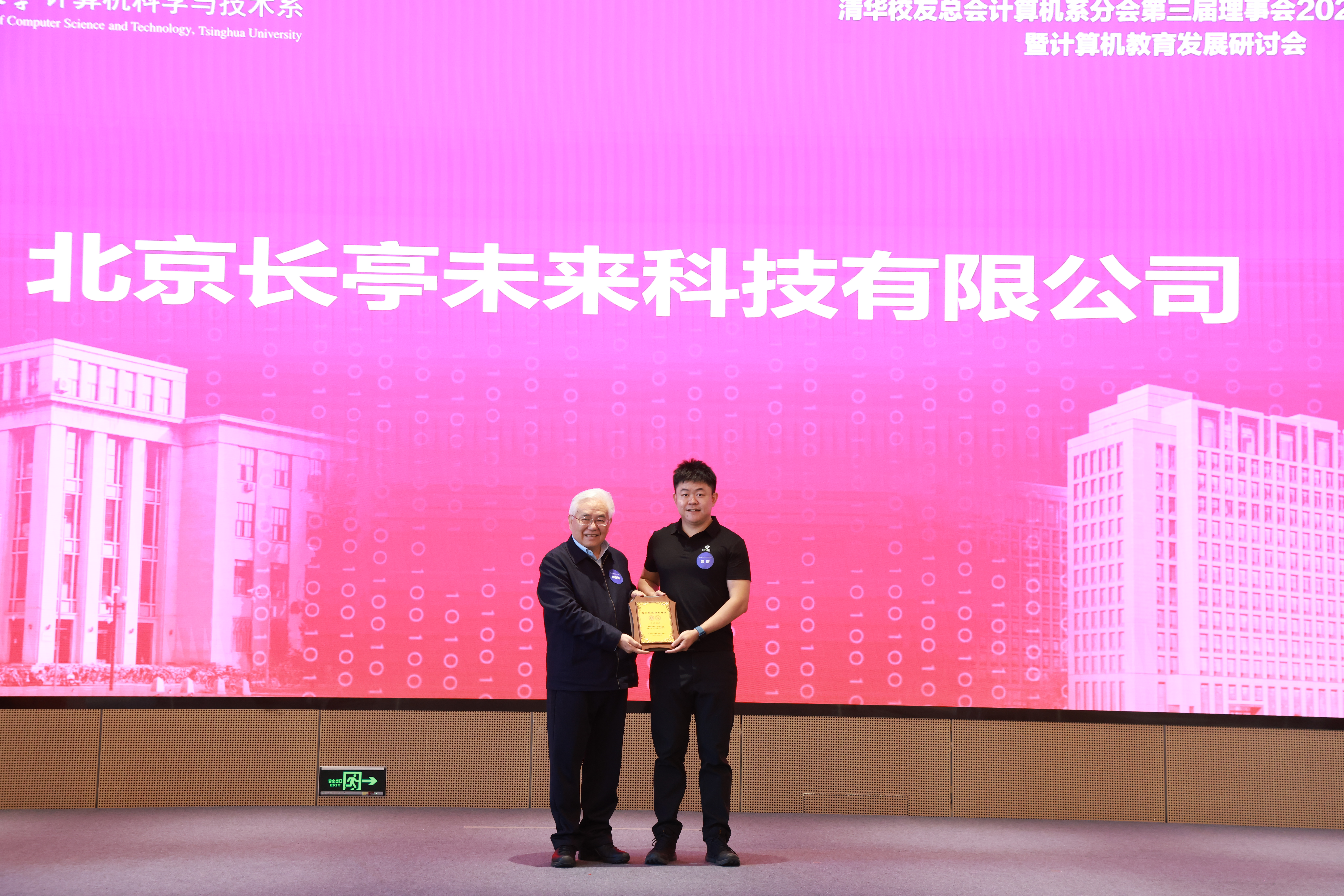 在校友捐赠授牌仪式中,计算机系的老领导、院士们分别为捐赠的校友和企业代表颁发了致谢牌。