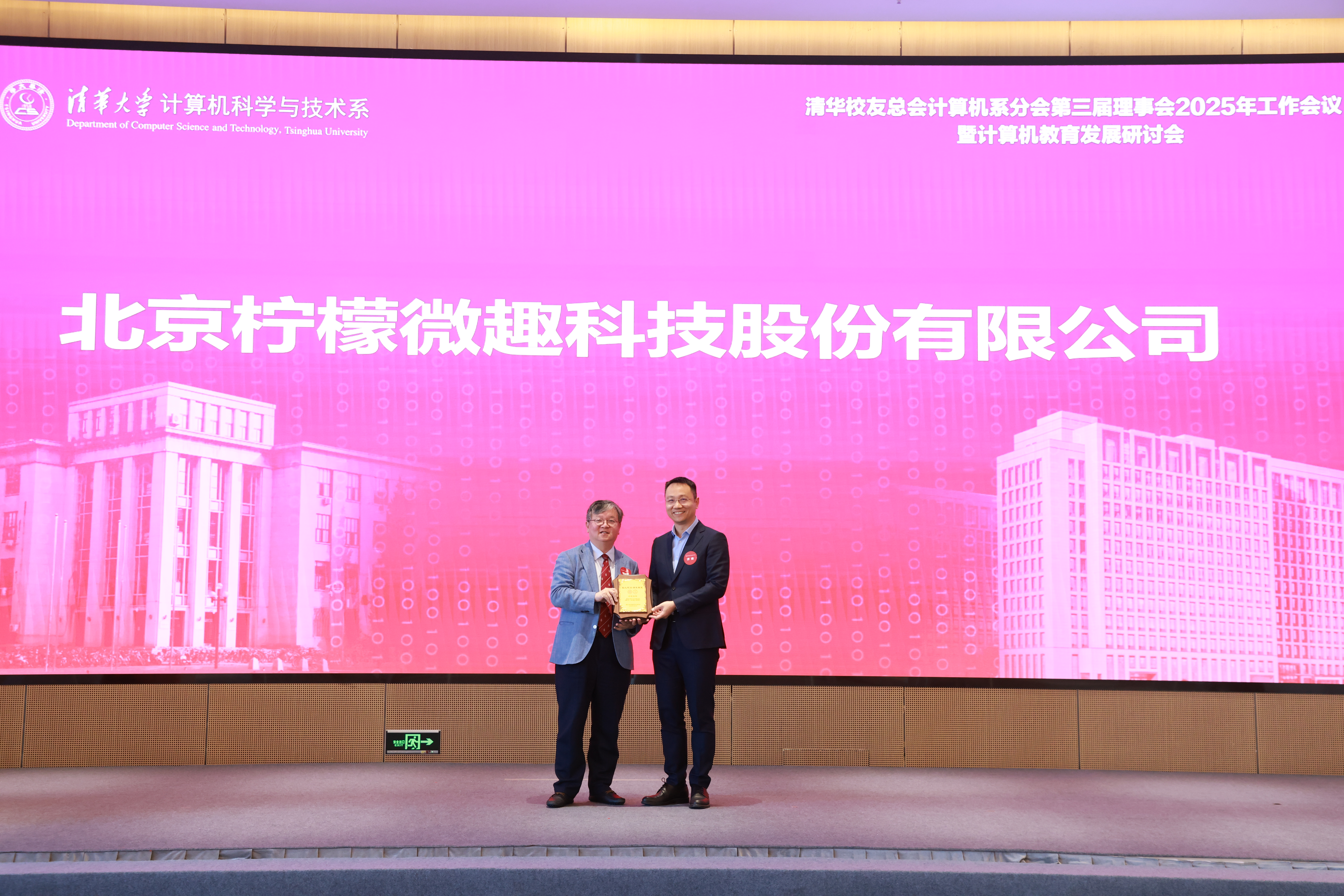 郭毅可院士为2000级校友、计算机系分会副会长、北京柠檬微趣科技股份有限公司CEO齐伟颁发捐赠纪念牌