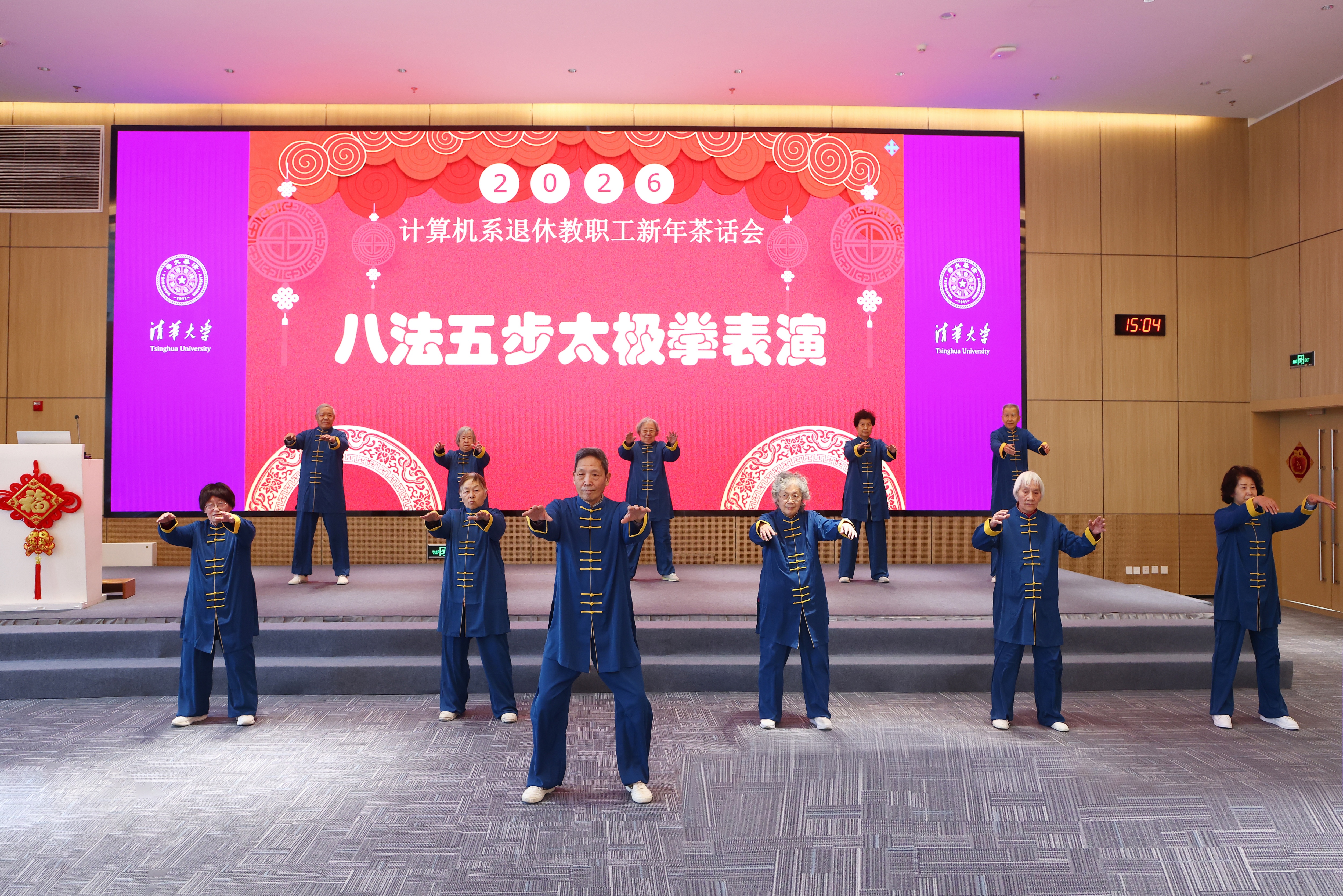 12月26日下午,计算机系在百川楼多功能厅举办了2026年退休教职工新年茶话会。系主任尹霞、系二级单位代表、党办和各所行政工作人员以及50余位退休教职工参加了此次茶话会。会议由系党委副书记赵颖主持。
