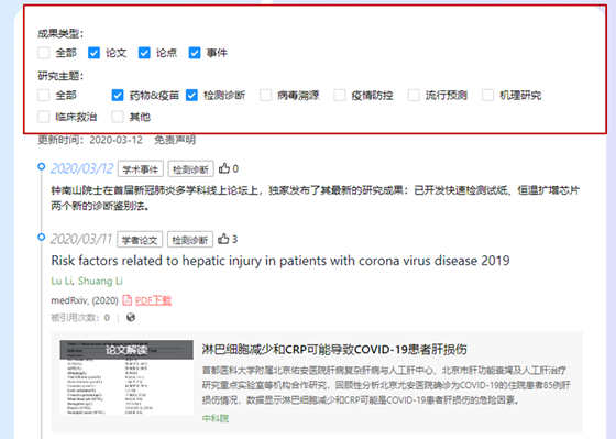 基于 AMiner 平台专家、论文数据和舆情平台资讯数据,通过数据挖掘,,以时间轴的方式聚合当前最新和重点学术研究成果,包括公开在期刊杂志上发表和预印刷的论文、专家公开发表的研究观点和疫情相关的学术事件,从不同主题为疫情和冠状病毒相关领域研究的学者和产业从业者提供 NCP 相关的学术情报。
